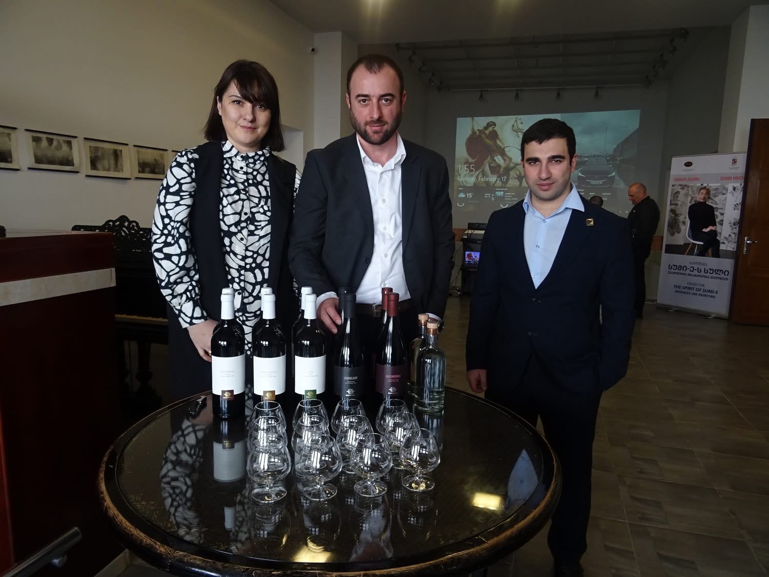 在ジョージア日本大使館の協力のもと開催されてきた「菊田一朗 墨絵のこころ」展。バトゥミのアジャラ美術館、首都トビリシの国立現代美術館MoMaに続き、シグナギ市の協力と共にシグナギ美術館、「ジョージア・ワイン・コレクション」の共催での展示が始まりました。2月17日のオープニング式典では、シグナギ美術館長 マコ・イナサシヴィリ氏、駐ジョージア特命全権大使 石塚英樹氏、シグナギ副市長であるゴチャ・ヴァルディアシヴィリ、デビッド・ドゥルクリッシュヴィリ、マルクハズ・メラヴィシヴィリ各氏らによる挨拶に続き、「ジョージアワインコレクション」、「バクヴェルリ・ワイナリー」各社によるイベントが開催。国際的ピアニスト 碓井俊樹氏による演奏会、近代ワインについての発表と新作ワインの試飲会、そして水野隆守氏による和紙を使った衣装が展示され、来場した多くの人々が楽しみました。この展示会は5月20日までの3ヶ月間続きます。